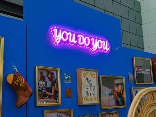 The concept behind the tent design was to create a unique experience to students who enter into the Customization Station. The outside is branded with generic CCA branding, but once you enter you get something entirely creative and unique. This sets the mood for students to be their creative and imaginative selves.